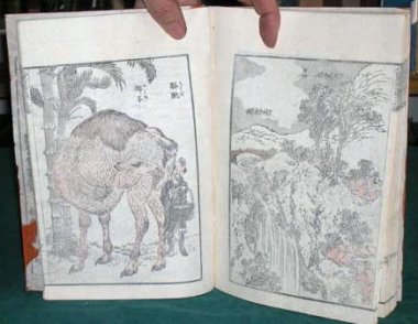 Une page de texte au début et une autre à la fin. Imprimé sur papier de chine. Estampes en couleurs. Vers 1870. 13e tome de la manga de Katsukawa Hokusai dans un retirage de l’époque Meiji.