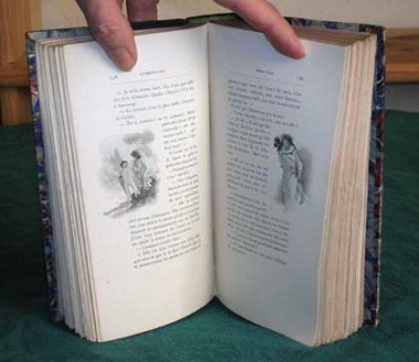 Belle reliure demi-chagrin bleu marine. Dos lisse avec joli décor doré réhaussé. Filet doré bordant les plats. Tête dorée. Couverture illustrée conservée. Dos légèrement insolé. Bel exemplaire, en bon état. Format 19×10.