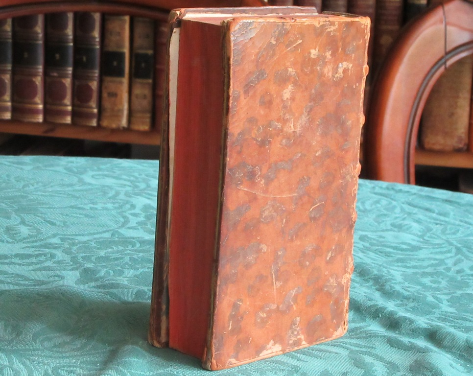 Reliure plein veau de l’époque. Dos à nerfs orné et doré. Pièce de titre en maroquin rouge. Tranches rouges. Coiffe supérieure usée. Mors du 1er plat fendu et fragile. 1 page de titre gravée en plus de la page de titre. Quelques rousseurs. Etat moyen. Format in-12° (18×12).