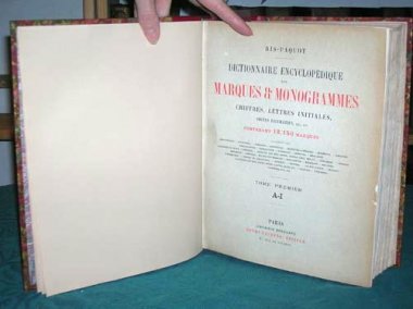 Chiffres, Lettres initiales, signes figuratifs, etc., etc. contenant 12.156 marques concernant les Aquafortistes – Architectes – Armuriers – Bibliophiles – Célébrités littéraires – Céramistes – Ciseleurs – Damasquineurs – Dessinateurs – Dinandiers – Ébénistes – Émailleurs – Fabricants de papier – Fondeurs – Graveurs sur bois, cuivre, pierres fines, métaux – Horlogers – Huchiers – Imprimeurs – Libraires – Maitres des monnaies – Miniaturistes – Modeleurs – Nielleurs – Numismatique – Ordres de chevaleries – Orfèvres – Peintres – potiers d’étain – Relieurs – Sculpteurs sur bois, pierre, ivoire, albâtre, nacre, etc. – Tapissiers – Tisserands – Tourneurs, etc.