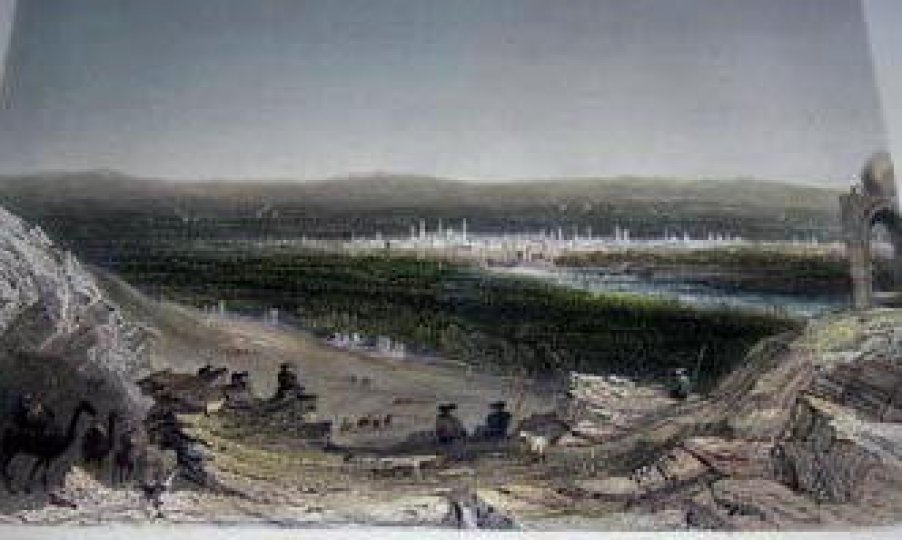 Gravure en couleurs. Damascus – distant view from the mountain side.