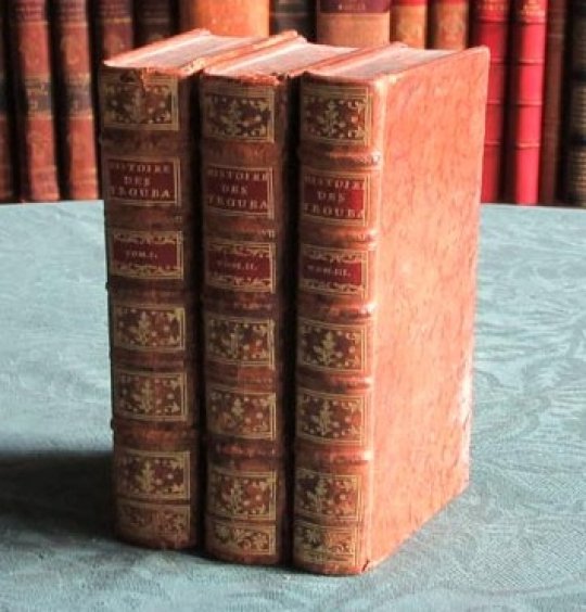 Reliure plein veau marbré de l’époque. Dos à nerfs orné et doré avec pièce de titre et de tomaison maroquin rouge. Tranches marbrées. Filet doré sur les coupes. Galeries de vers aux mors. Pas de rousseur. Très bon état. Format in-12°(17×10).