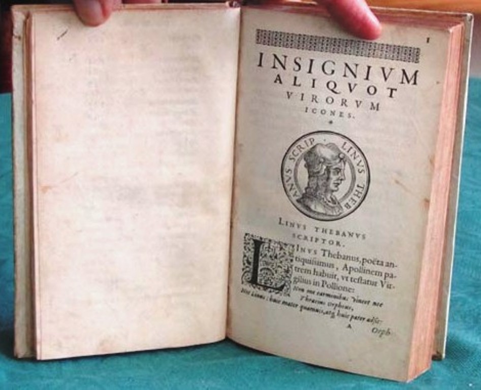 Première édition de ce beau recueil comprenant 145 médaillons avec les effigies de différents personnages de l’antiquité grecque et romaine, accompagnés de biographies succinctes tirées des meilleurs auteurs anciens. Plusieurs de ces portraits représentent des personnages figurant dans le promptuaire des médailles de Guillaume Rouillé (1553) et certains ont été utilisés dans Thésaurus amicorum (vers 1557) de J. de Tournes.