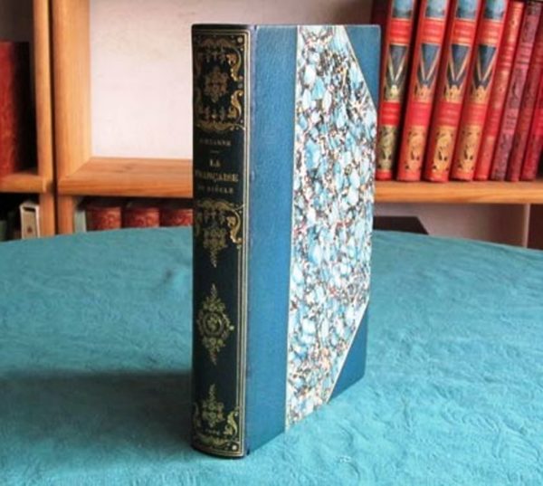 Reliure demi-maroquin bleu à coins de l’époque signée Stroobants. Dos lisse orné et doré. Tête dorée sur témoins, non rogné. Filet doré bordant les plats. Non rogné. Couverture et dos illustrés conservés. Pas de rousseur. Parfait état. Format in-4°(28×19).