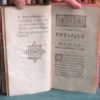 Reliure plein veau marbré de l’époque. Dos à nerfs orné et doré. Tranches rouges. Petites mouillures marginales sans gravité sur quelques feuillets. Coins émoussés. Un coin manquant. Un mors fendu sur 2 cms. Tampon ex-libris sur la page de titre. Pas de rousseur. Assez bon état. Format in-12°(17×10).