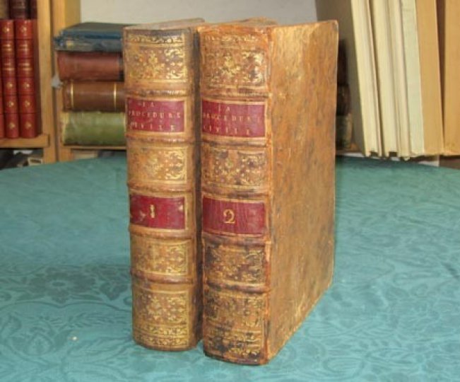 Édition originale. A Paris, chez Garnery et chez H. Nicolle. De l’Imprimerie des Frères Mame, 1807-1808. T1° xxxiv, 690 et 22 (Table des Titres) pages. T2° 782 et 94 (Code de Procédure Civile) pages.