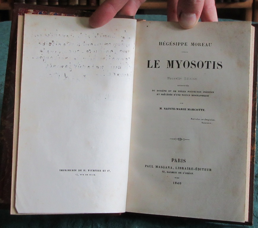 Petits contes et petits vers par Hégésippe Moreau (1810-1838). Nouvelle édition augmentés de Diogène et de pièces posthumes inédites et précédée d’une notice biographique par M. Sainte-Marie Marcotte.