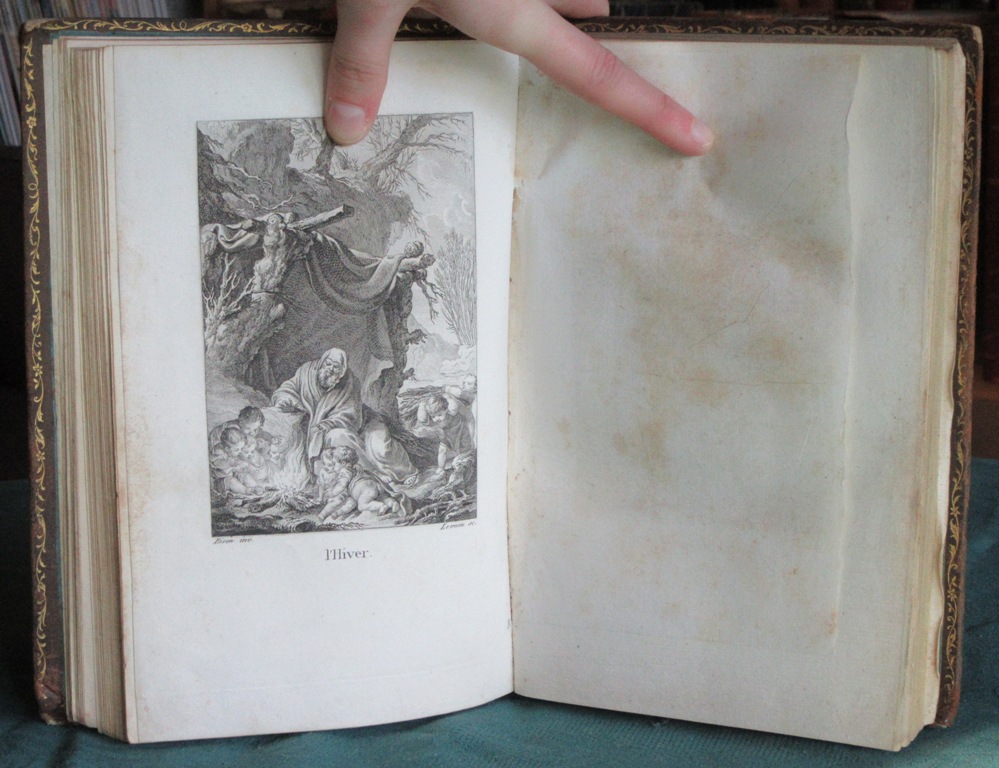Traduites en vers, avec des remarques et des notes par M. Desaintange. Le texte latin en regard, et ornée de 161 estampes, gravées au burin sur les dessins des meilleurs peintres de l’école française, Moreau le jeune et autres, en 4 volumes. Tome 1.