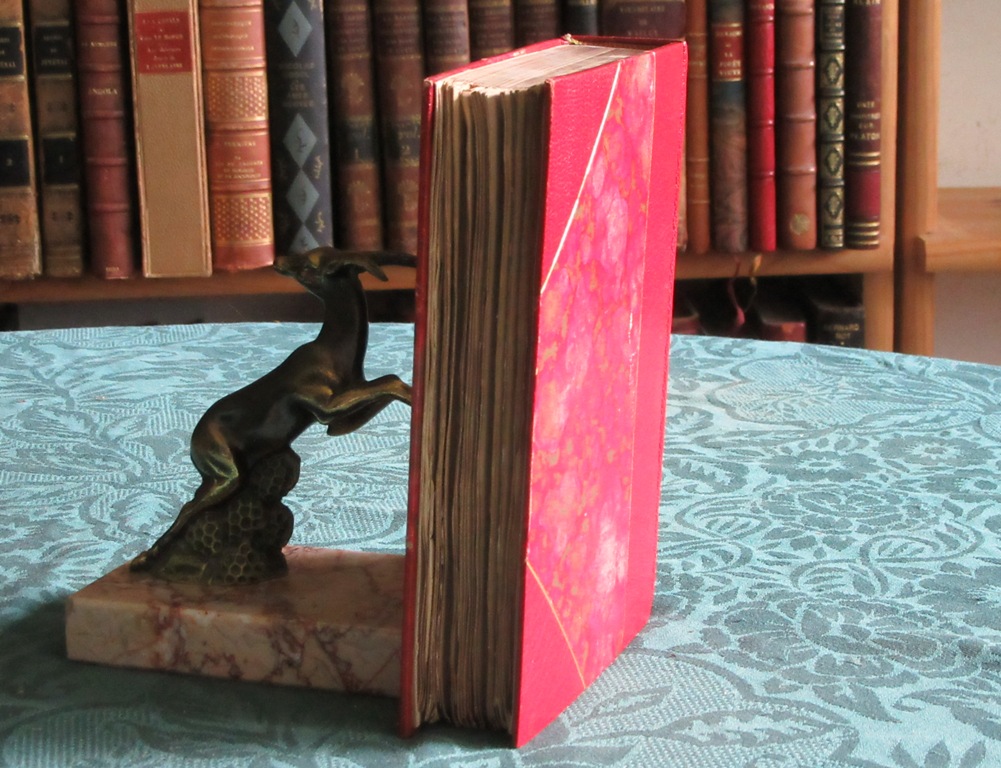 Très belle reliure demi maroquin rouge à coins à la bradel. Dos lisse aux titre, auteur et date en pied dorés. Filet doré bordant les plats. Tête dorée sur témoins, non rogné. Couverture jaune conservée. Pas de rousseur. Parfait état. Format in-12°(19×13).