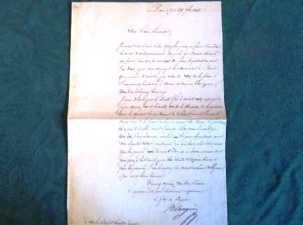 Simple soldat en 1817, il est capitaine en 1835, et maréchal de camp en 1847. La lettre est signée du général de brigade en 1848.