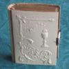 Jolie reliure rigide couleur ivoire avec fermoir. Décor en relief sur le premier plat. Dos muet. Tranches dorées. Signet. Frontispice détaché. Pas de rousseur. Très bon état pour cet élégant exemplaire. Format in-16°(11×8).