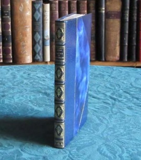 Belle reliure demi maroquin bleu à coins. Dos à nerfs richement orné et doré. Filet doré bordant les plats. Tête dorée sur témoins, non rogné. Couverture illustrée et dos conservés. Pas de rousseur. Très bel exemplaire en parfait état. Format in-12°(19×15).