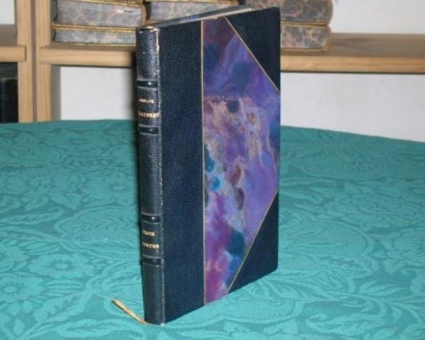 Reliure demi-chagrin noir à coins de l’époque. Filet doré bordant les plats. Dos à 4 nerfs aux titre et auteur dorés. Tète dorée sur témoins, non rogné. Couverture et dos conservés. Signet. 2 coins et mors légèrement frottés. Pas de rousseur. Très bon état. Format in-8°(21×14).
