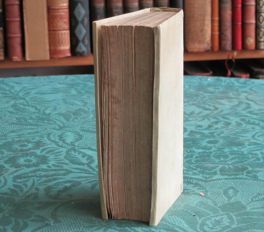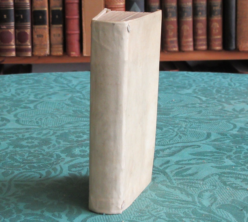 Reliure plein vélin ivoire à rabats postérieure. Dos lisse muet. Pages de titres noircies avec mouillures. Des mouillures sur le premier texte. Bon état. Format in-12°(17×10).